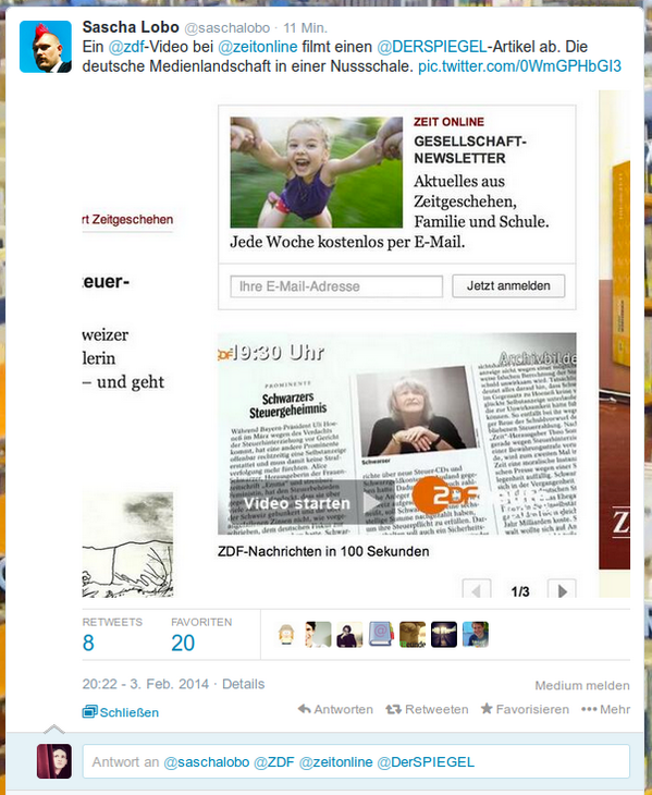 Ein @saschalobo-Screenshot auf @twitter von einem @ZDF-Video bei @zeitonline, das einen @DerSPIEGEL-Artikel abfilmt. pic.twitter.com/D6WfedVstF