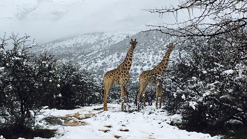 "Wenn Giraffen Krawatten tragen, tragen sie die dann oben am Kopf oder unten am Hals?"