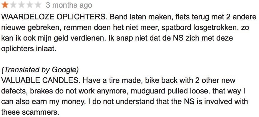 “Waardeloze oplichters” (worthless scammers) gets translated as “Valuable candles”.