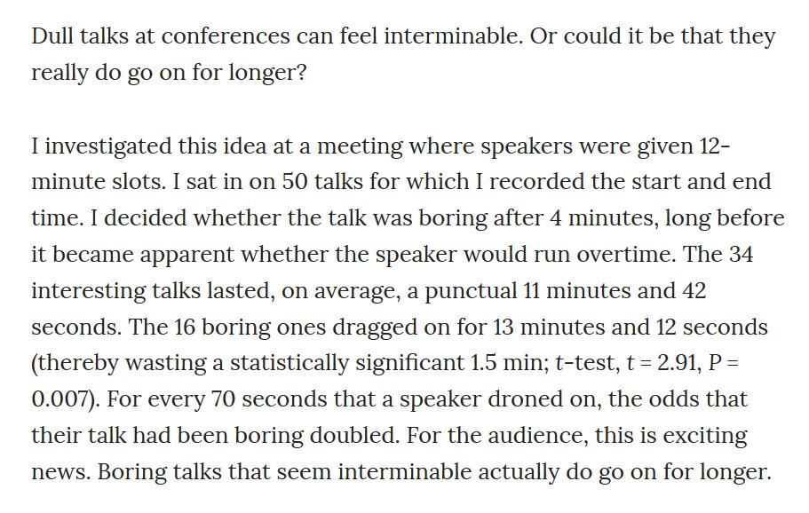 michaelhoffman This is amazing. "Do boring speakers really talk for longer?" Nature (2018) 561:464. nature.com/articles/d4158… pic.twitter.com/RORRFUVxsN