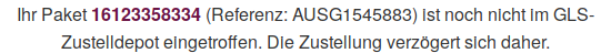 @GLS_Germany 1. Mail (gestern um 21:10):