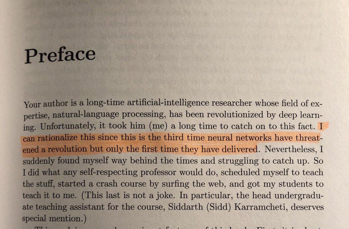 deliprao Eugene Charniak’s #DeepLearning book gives an insight into why many highly respected #NLProc researchers held back from joining the 3rd NN party that started circa 2008. pic.twitter.com/N1CfrruczX