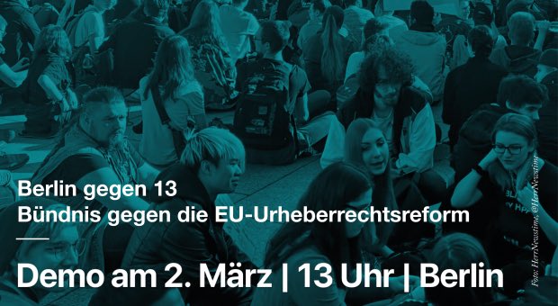 Freischreiber Heute gehen wir Urheber*innen auf die Straße: Das Bündnis #Berlingegen13 demonstriert gegen die EU-Urheberrechtsreform. Die Demo startet um 13 Uhr am Axel-Springer-Hochhaus (Rudi-Dutschke-Straße/Lindenstraße). freischreiber.de/aktuelle/berli… #Copyright #artikel13 pic.twitter.com/HQNkLkPk99