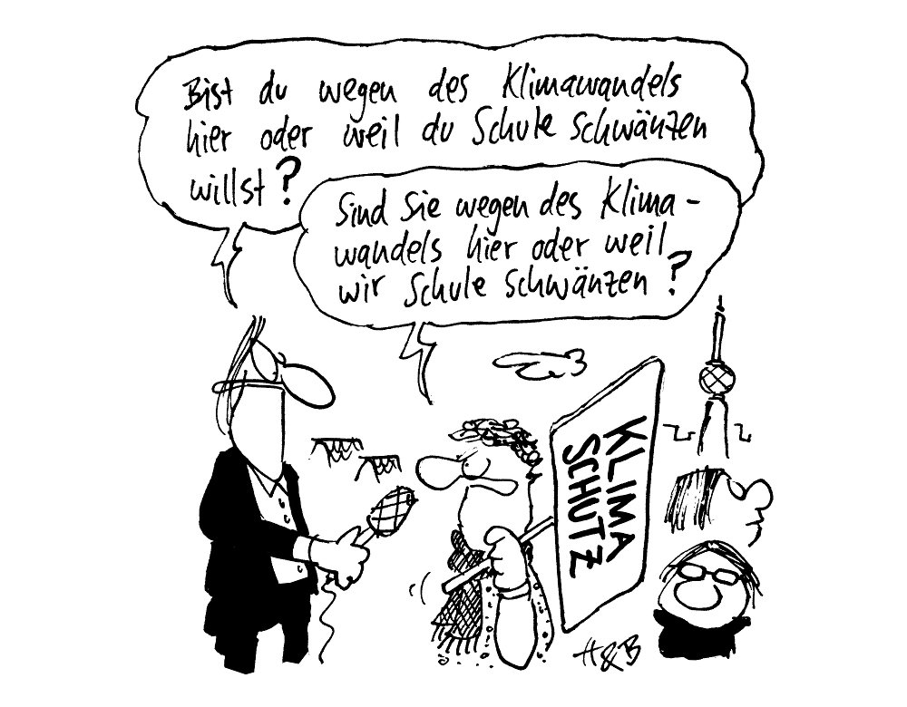 marteimer Eine Gesellschaft, die Erwachsenen jegliche Schweinerei durchgehen lässt, verlangt von Kindern, dass sie ihre Klamotten selber nähen, nur noch zu Fuß gehen, ihr Essen selber anbauen und ein fertiges Weltbild ohne Widersprüche entwickeln, bevor sie auf eine Klimademo dürfen
