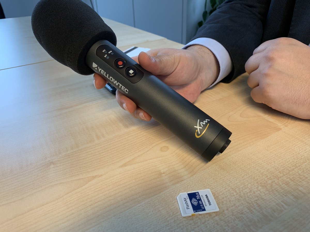 GabrielBerlin Wurde gerade vom ARD-Hörfunk interviewed und der Reporter benutzte dieses ~sehe geile~ Gerät: Das Mikro nimmt in 3 Pegeln parallel auf, pegelt rückwirkend automatisch alles richtig und speichert auf die unten drinsteckende SD-Karte, die ein eigenes WLAN zum Dateitransfer aufbaut. pic.twitter.com/LYxtcVUafc