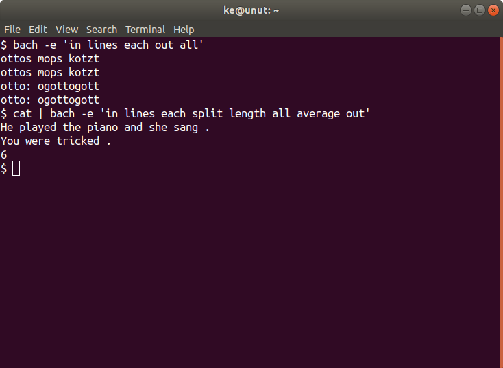 In which we implement cat in Bach, and then write the first useful Bach program: it computes the average number of tokens per line. pic.twitter.com/ygeyDhHaIR