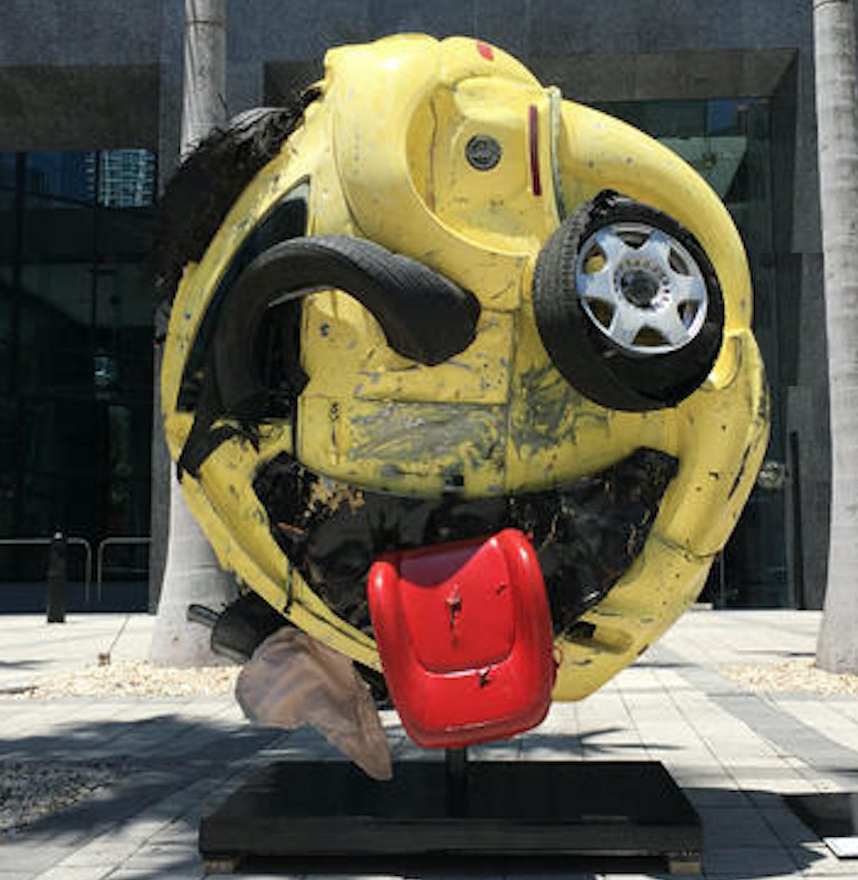 MrEwanMorrison "The Last Emoji" An Emoji Sculpture that plays on fatal consequences of Texting and Driving at the same time was created for an ad campaign, but its also a pretty fine bit of conceptual art.