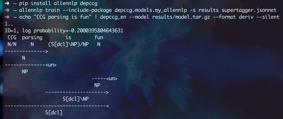 azraq1688 I made it easy to do CCG parsing experiments using #AllenNLP! Try CCG parsing benchmark on top of supertagging's one, in inspecting language model's ability. A SOTA ELMO-based model, HTML visualization, and logical formula output are available: github.com/masashi-y/depc… #NLProc pic.twitter.com/GWoxIvmYVK