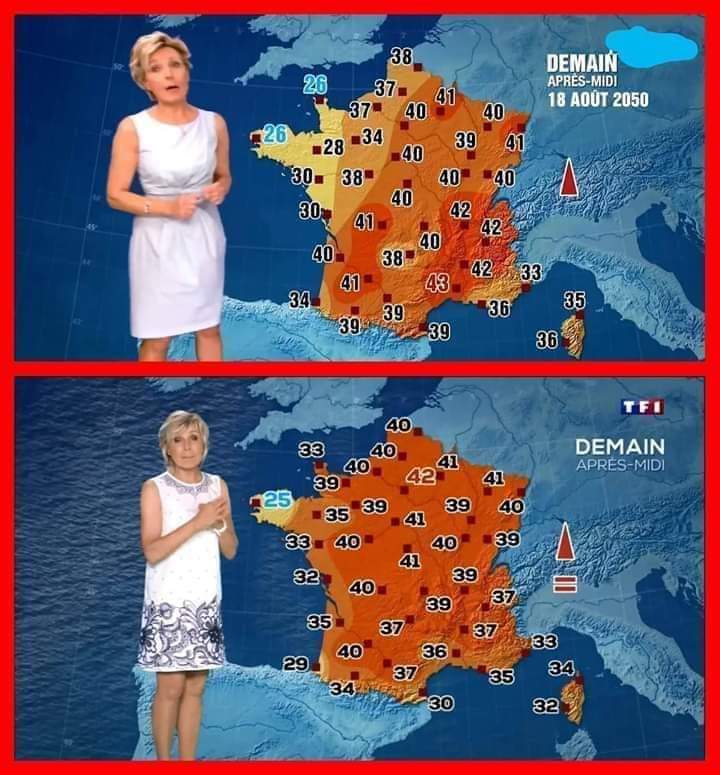 EtheHerring The top image is a fictitious weather report imagining what the weather would be like in 2050 for a 2014 French TV documentary about climate change.
