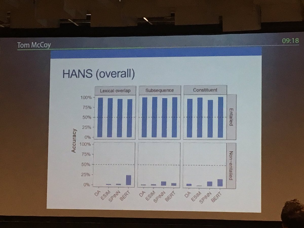 emilymbender HANS cleverly reveals the reliance on the heuristics. #acl2019nlp pic.twitter.com/hP4OIE3rBc