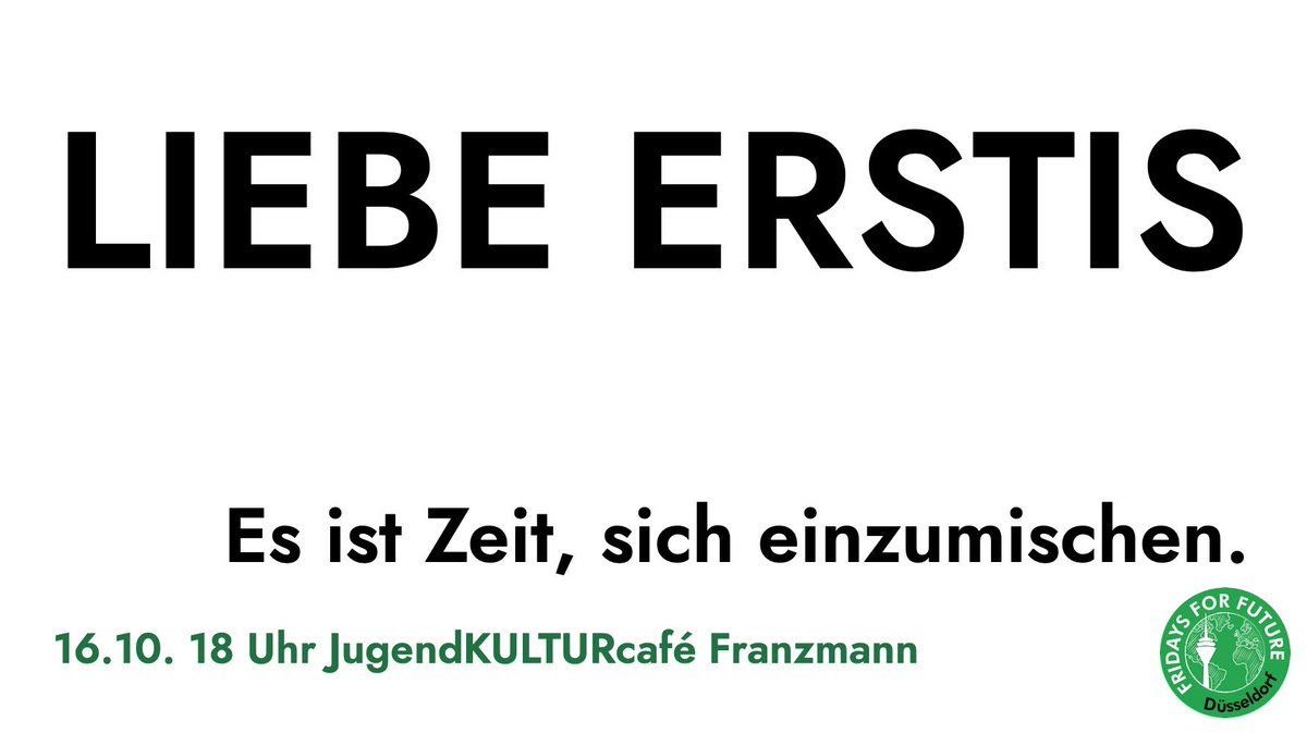 fff_duesseldorf Es ist Zeit, sich einzumischen! Am 16.10 laden wir alle Erstsemester-Studierende (und natürlich auch alle Interessierten aus höheren Semestern) zu einem gemütlichen und unterhaltsamen Infoabend ein. Unverbindlich und mit Freigetränken :) @HHU_de