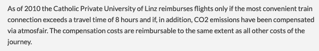 StefanMuelller We have a new best-practice example: The Catholic Private University Linz does not reimburse short-haul flights if there is a connection below 8 hours. Please sign #unter1000 if you are a scientist in a DACH country. #staygrounded #flyingless unter1000.scientists4future.org/best-practice-… pic.twitter.com/FYDAbbAW6E