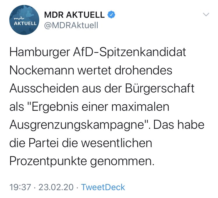 MartinaRenner Das was gestern passierte, war kein Zufall oder Unfall. Der Pakt aus Konservativen und der extremen Rechten erklärt sich aus dem historischen gemeinsamen Bindeglied - dem Hass auf Linke. Für diesen Hass nimmt man den politischen Sieg der #NoAfD in Kauf. 1/2