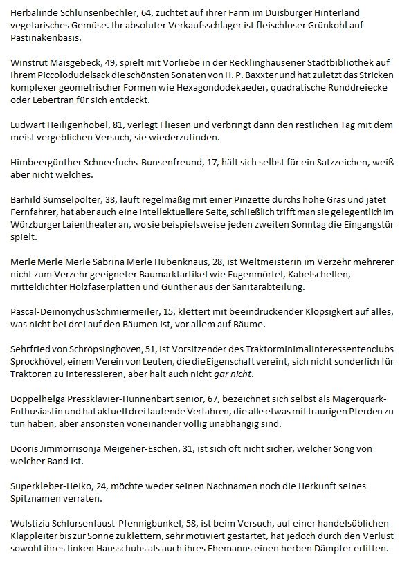 derwahremawa Neue Recherche: Journalistennamen, die gleichzeitig Tätigkeiten sind. Beispielsatz: »Gustav seibt, obwohl er lieber seinen Holm friebe.«