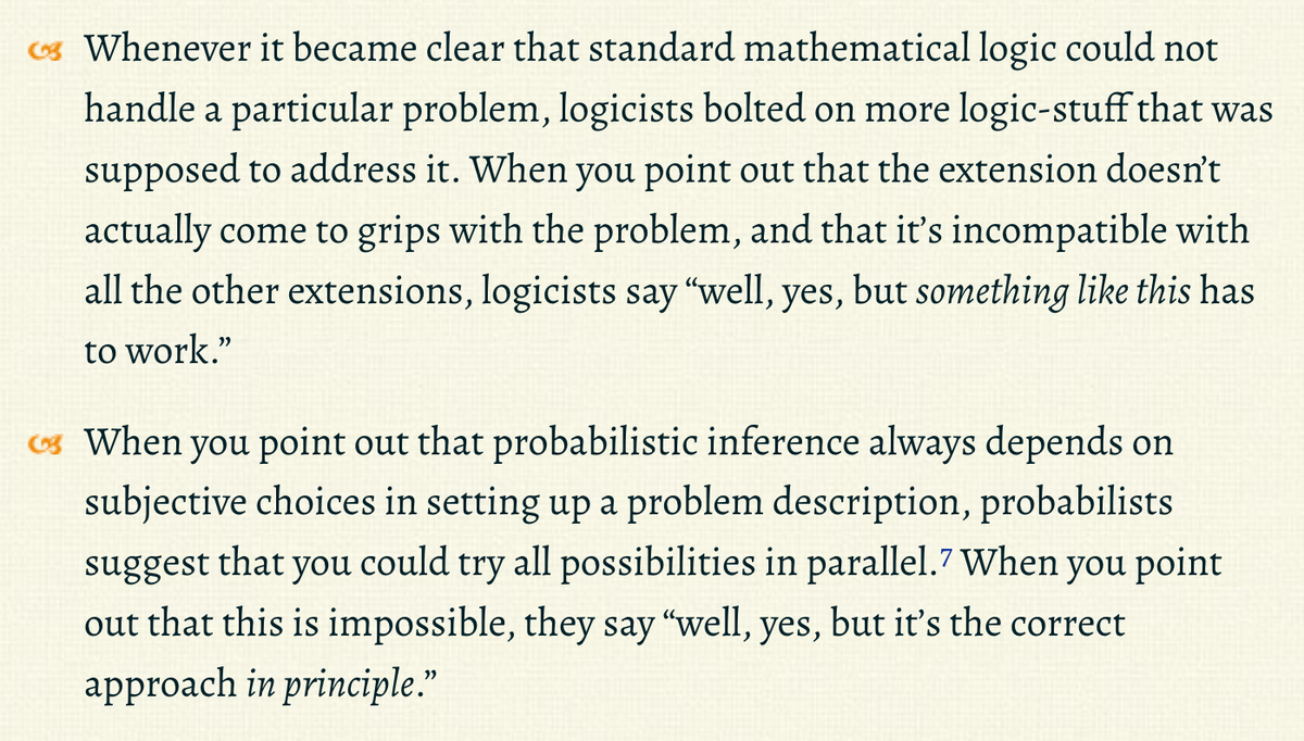 "Programmierer arbeiten nicht mit Formeln, sondern mit Annahmen und Heuristiken. (...) Eine rigorose Analyse, ob die Annahmen der zusammengebastelten Komponenten überhaupt gleichzeitig erfüllt sein können, macht niemand." twitter.com/hllizi/status/…