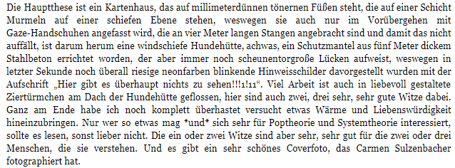 texttheater .@Erbloggtes Egal, was es ist - wenn es als gut und richtig erkannt ist, dann schreibt er dagegen an. Gibt einige so Nasen.