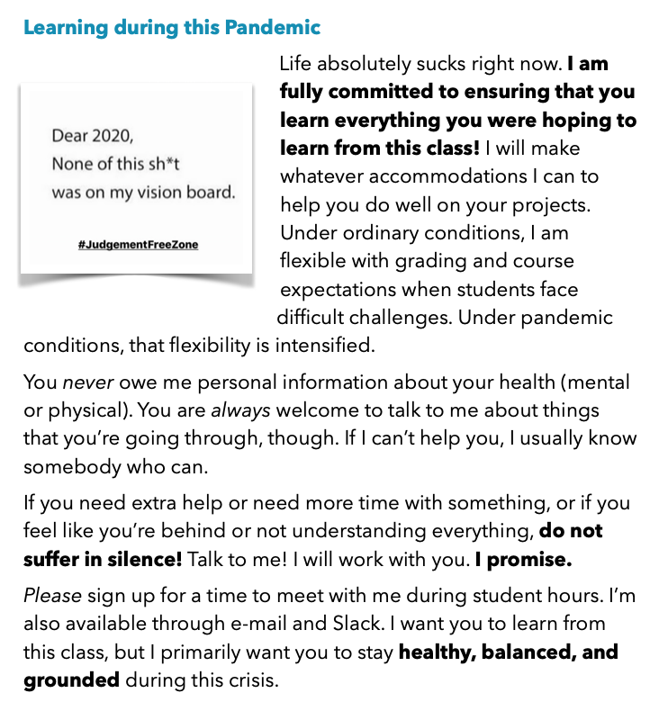philoso_foster A lot of students don’t know what “office hours” are, and assume it’s limited time for you to be working (which feel guilty for taking up), rather than time set aside specifically for them. I started calling them “student hours” last term instead, and way more students showed up!