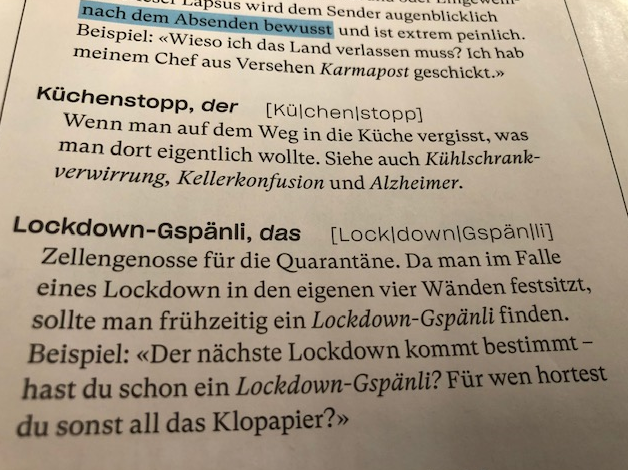 VariantenGra Lockdown, Slowdown, Shutdown - diese Wörter sind zur Zeit in aller Munde. Wie aber nennt man die Personen, mit den man diese Zeit durchsteht? Hier ein Vorschlag aus der NZZ-Rubrik "Neue Wörter braucht das Land". Mehr zu dem schönen Wort *Gspänli* unter idiotikon.ch/wortgeschichte… pic.twitter.com/aUWOpMCAzu