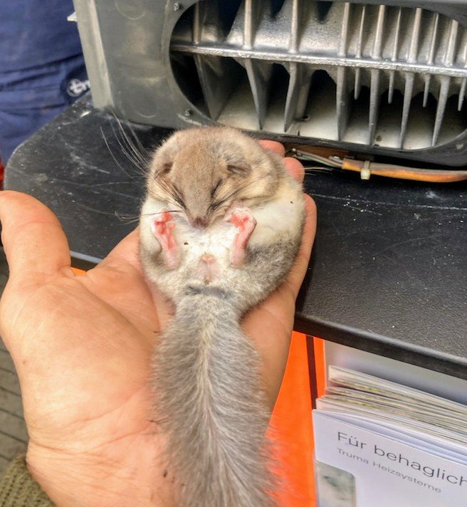 Mit einem Eichhörnchen.