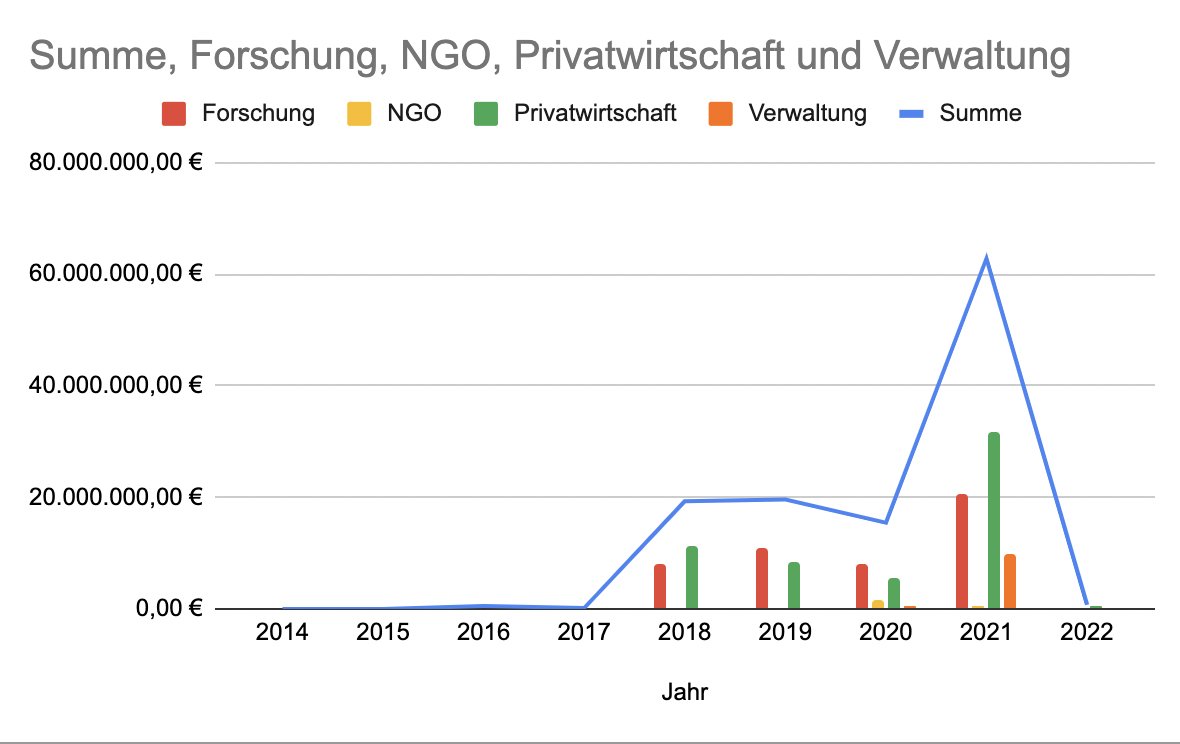 LilithWittmann Ich habe mal ein bisschen die Förderdatenbank des Bundes angeschaut und bin bisher auf knapp 120 Millionen Euro, die dort mit #Blockchain, #Ledger und #SSI Projekten verbrannt wurden, gekommen. pic.twitter.com/ybn8HPpEII