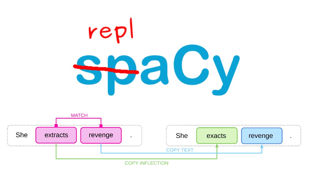 spacy_io replaCy: match and replace, maintaining conjugation.