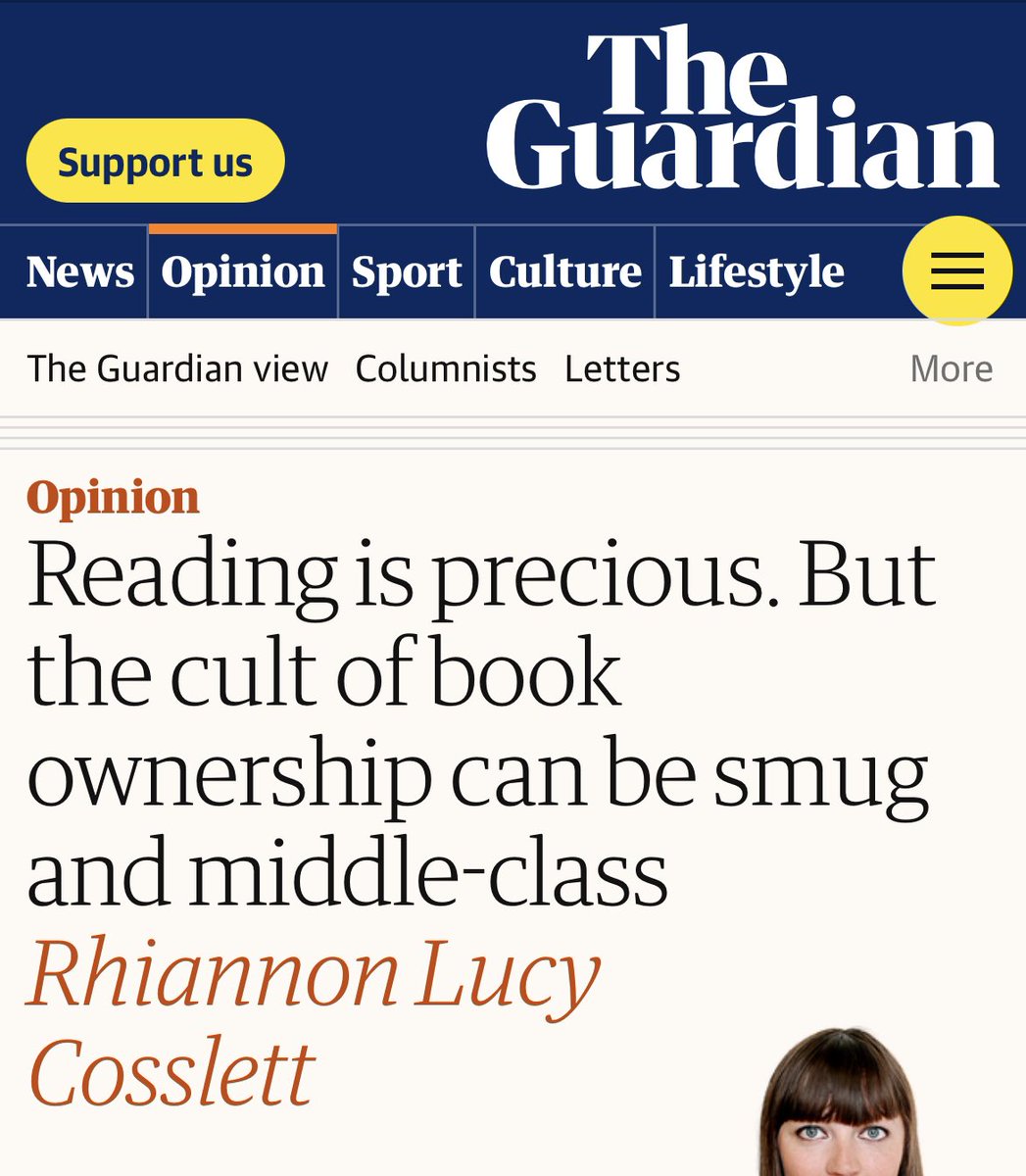 DarrenJohnson66 That article about having books in the house being smug and middle class attracted a lot of comment and derision. But it comes from a long line of "Love something? This is why it is bad" school of journalism. Thread: pic.twitter.com/cAx2qGPJDt
